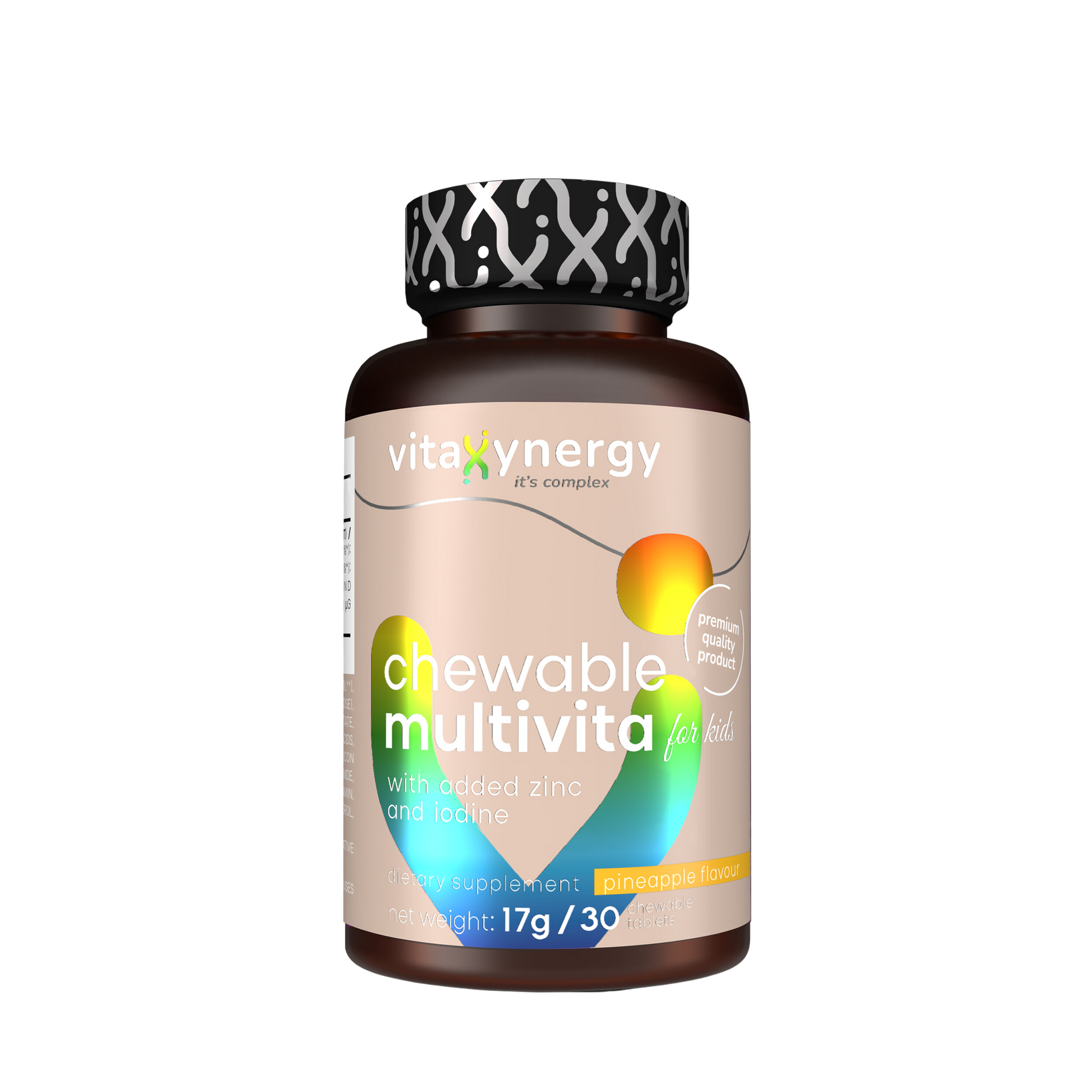 Bogat în vitamine esențiale, inclusiv A, C și D3, împreună cu nutrienți vitali precum zincul și iodul, acest supliment masticabil asigură copiilor elementele de bază necesare pentru un sistem imunitar puternic, oase sănatoase și bunăstarea generală. Realizat cu o aromă prietenoasă pentru copii, acesta transformă aportul zilnic de suplimente într- un deliciu savuros, transformându-l într-o completare plăcută și benefică a rutinei lor zilnice.