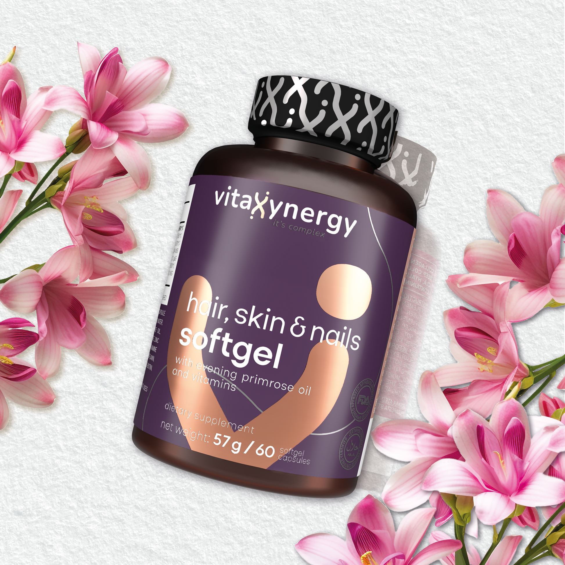 Descoperiți această formulă eficientă cu vitamina A, complexul de vitamine B, D3, E, biotină, zinc și uleiuri bogate în nutrienți, precum cel de luminița nopții și cel din sâmburi de struguri. Această formulă contribuie la sănătatea și vitalitatea generală a părului, pielii și unghiilor. Fiind sub formă de capsule moi, se îmbunătățește absorbția, asigurând o biodisponibilitate optimă pentru administrarea eficientă a acestor ingrediente hrănitoare, oferind o soluție eficientă pentru stimularea frumuseții din interior.