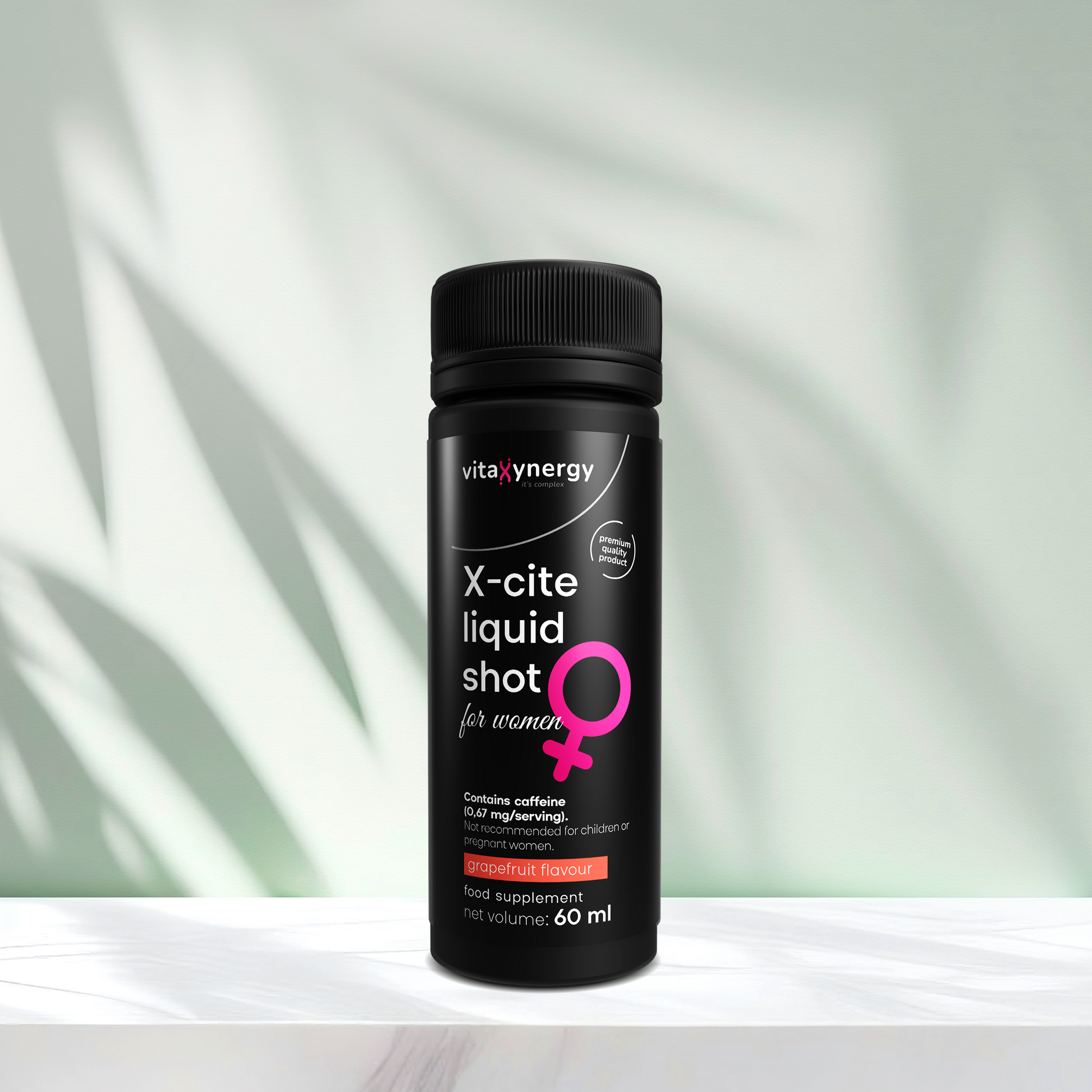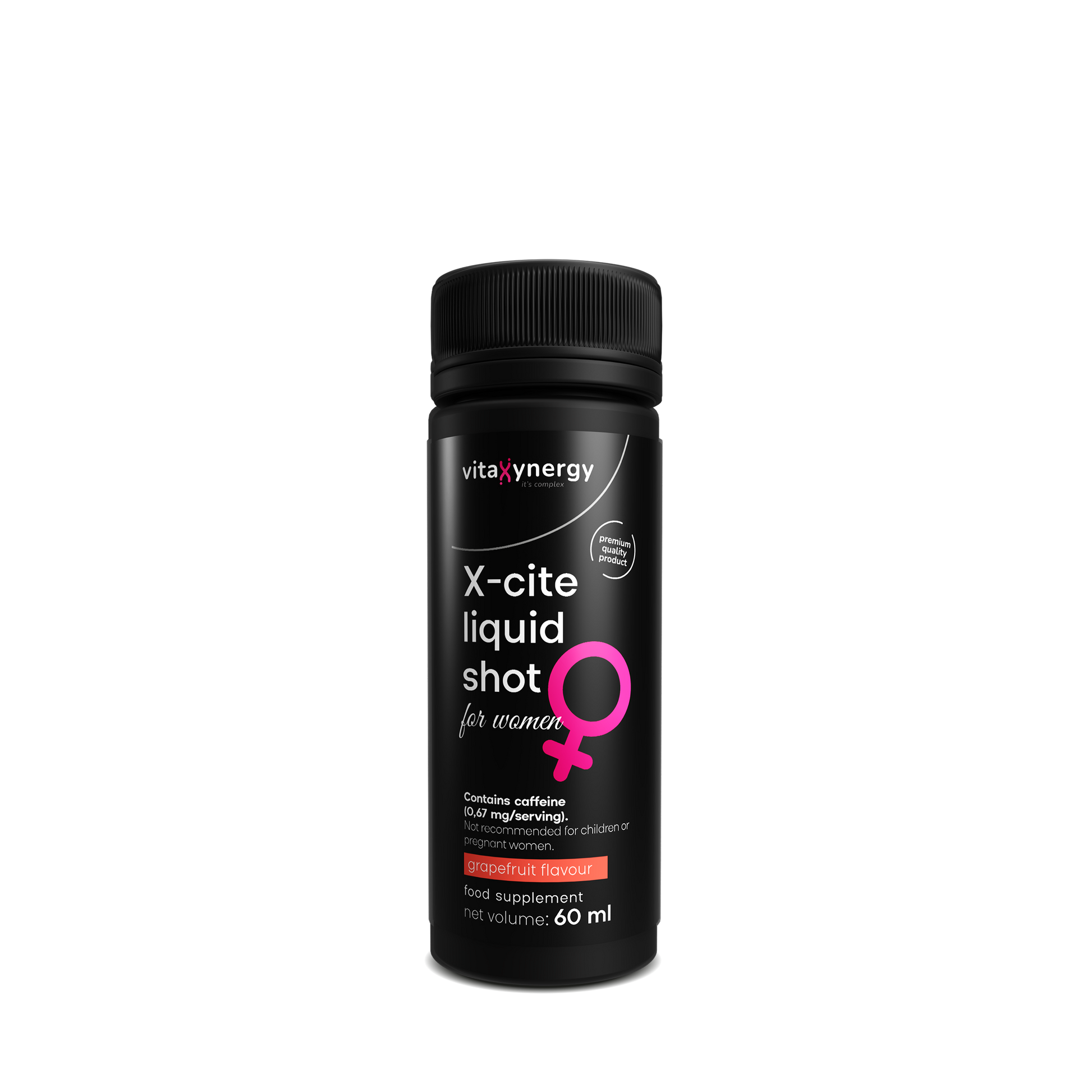 X-Cite Liquid Shot pentru Femei este un supliment alimentar cu aromă de grapefruit formulat pentru a susține sănătatea sexuală și vitalitatea femeilor. Această combinație unică îmbină aminoacizii, vitaminele și mineralele esențiale cu plante puternice precum Ginkgo Biloba, Fenicul și rădăcina de Maca, conceput pentru a crește libidoul, a susține echilibrul hormonal și a promova energia naturală. Fiecare doză de 60 ml furnizează nutrienți specifici care acționează împreună pentru a stimula libidoul, a îmbunătăți rezistența și a spori starea de bine.